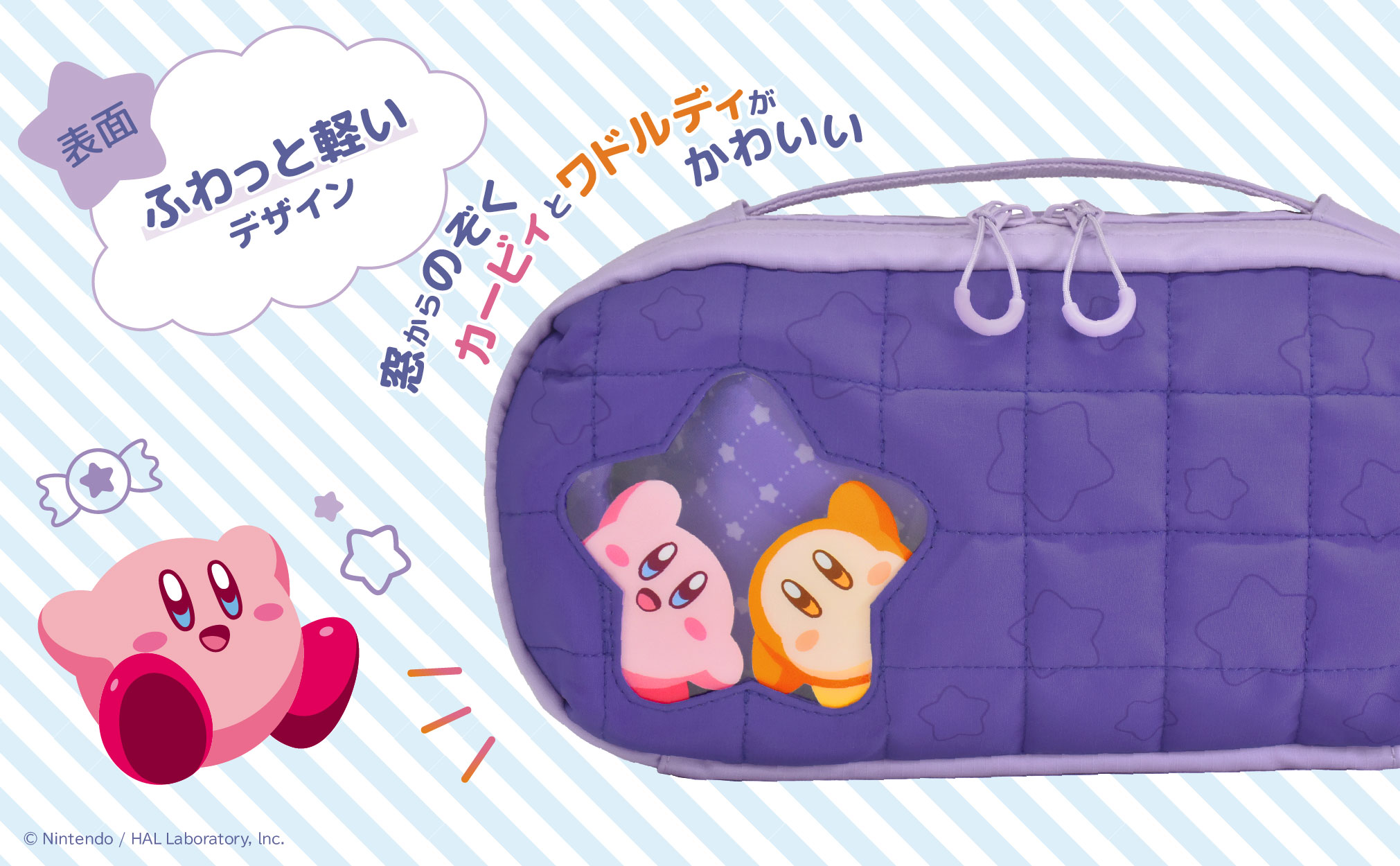 ふわっと軽いキルティング素材で、窓からのぞくカービィとワドルディがかわいいデザインです。