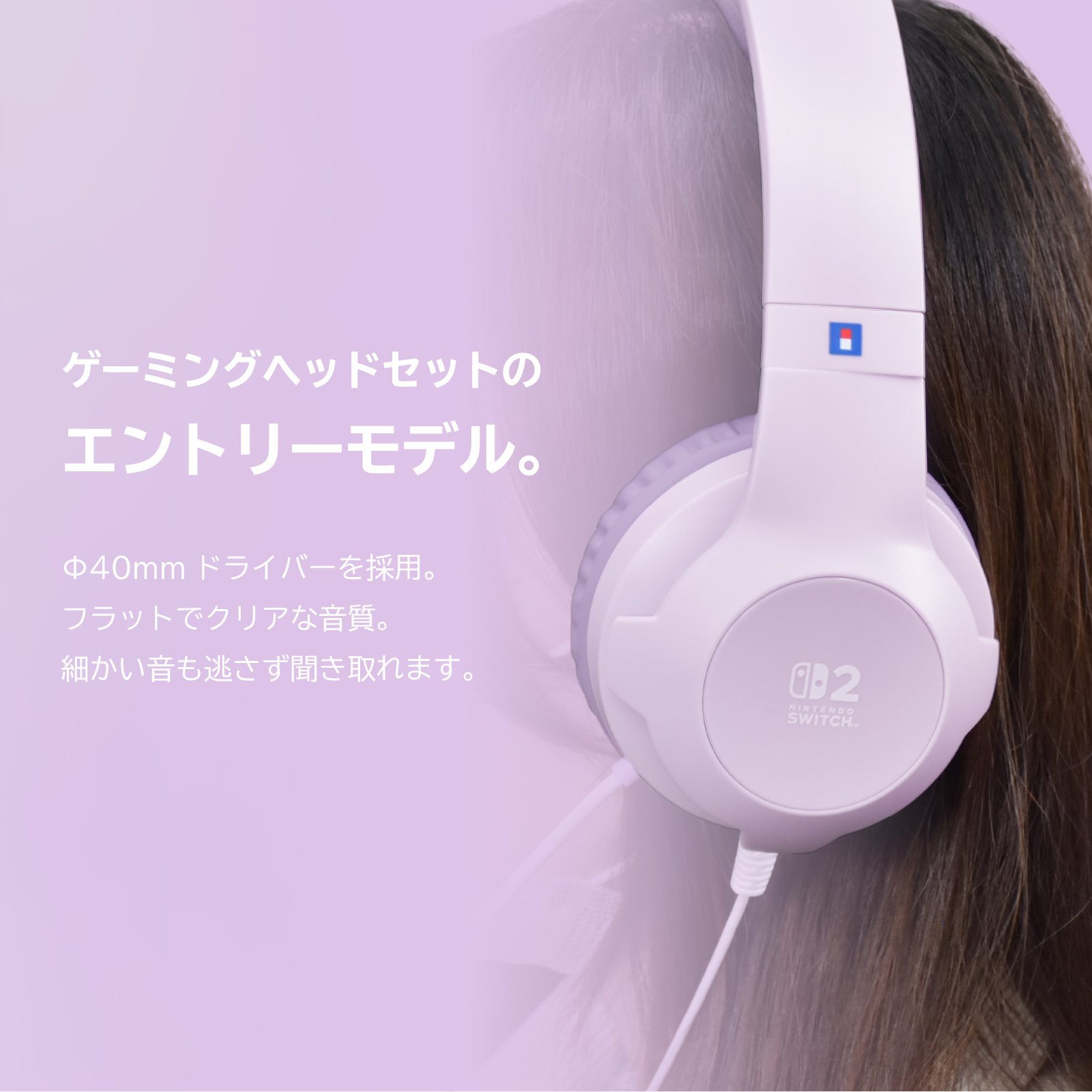 ホリゲーミングヘッドセット スタンダード for Nintendo Switch 2 パステルパープル