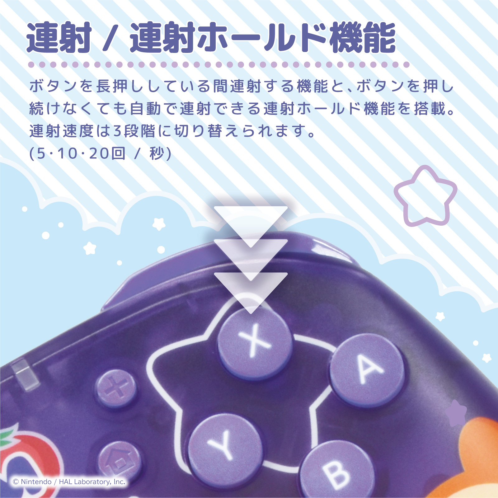ボタンを押している間のみ連射(連続で入力)する連射機能と、コントローラーから手を離していても自動で連射(連続で入力)し続ける連射ホールド機能を搭載。