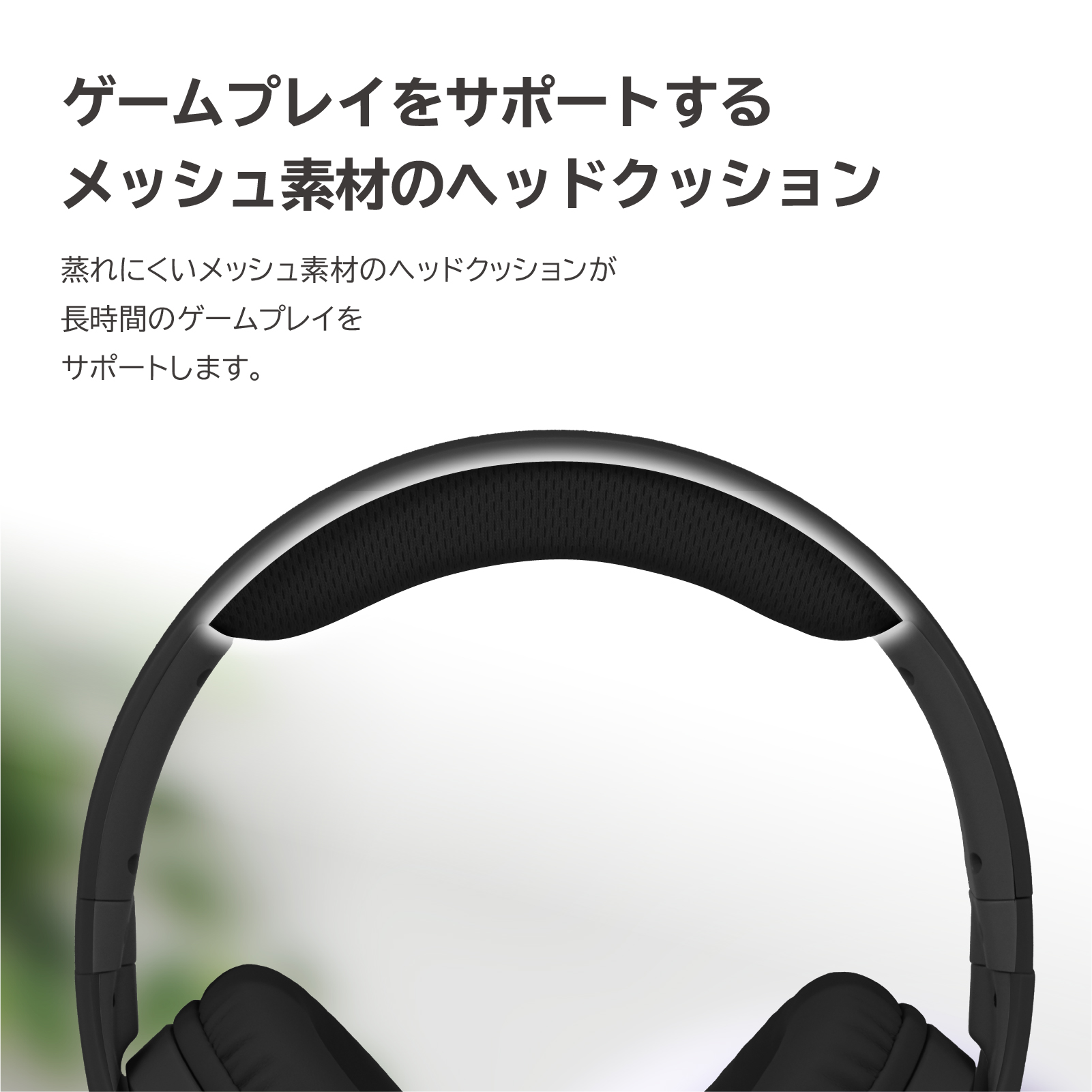 蒸れにくいメッシュ素材のヘッドクッションが長時間のゲームプレイをサポートします。