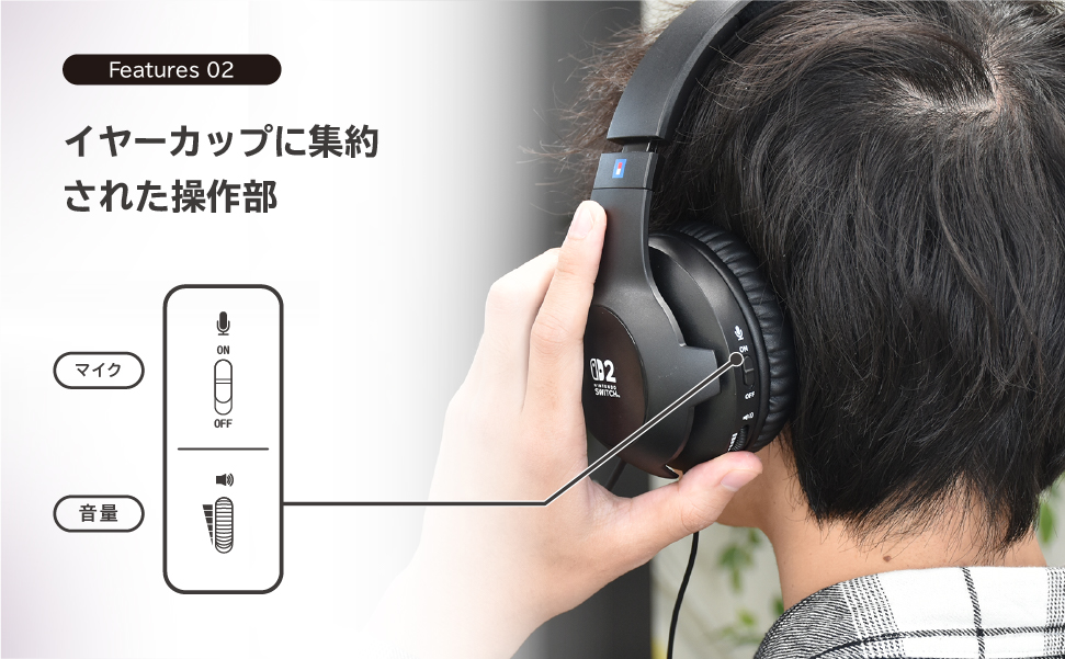 イヤーカップ部分に音量調節、マイクON / OFF機能を集約。
