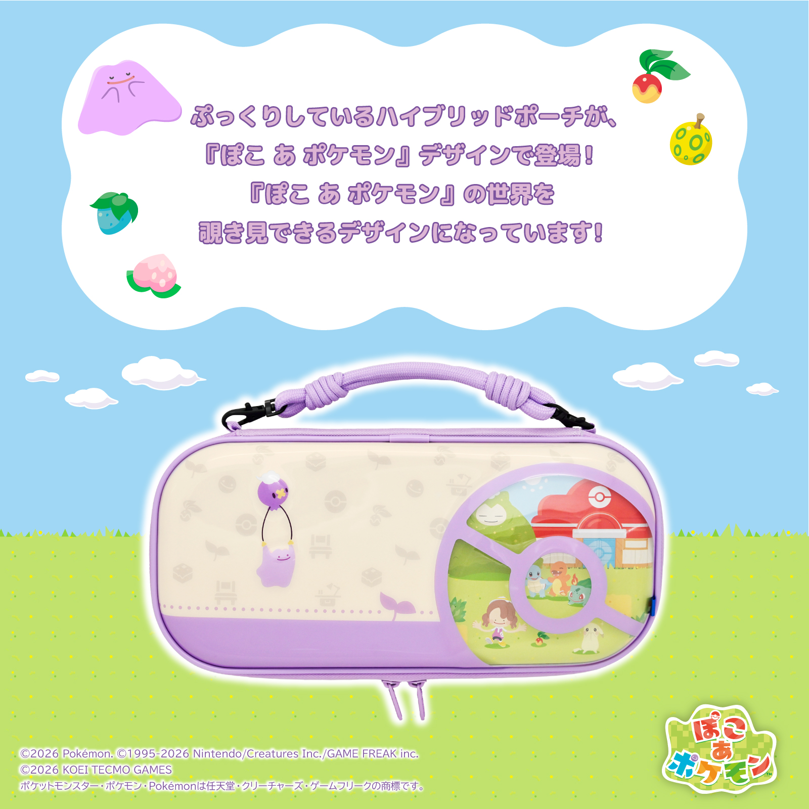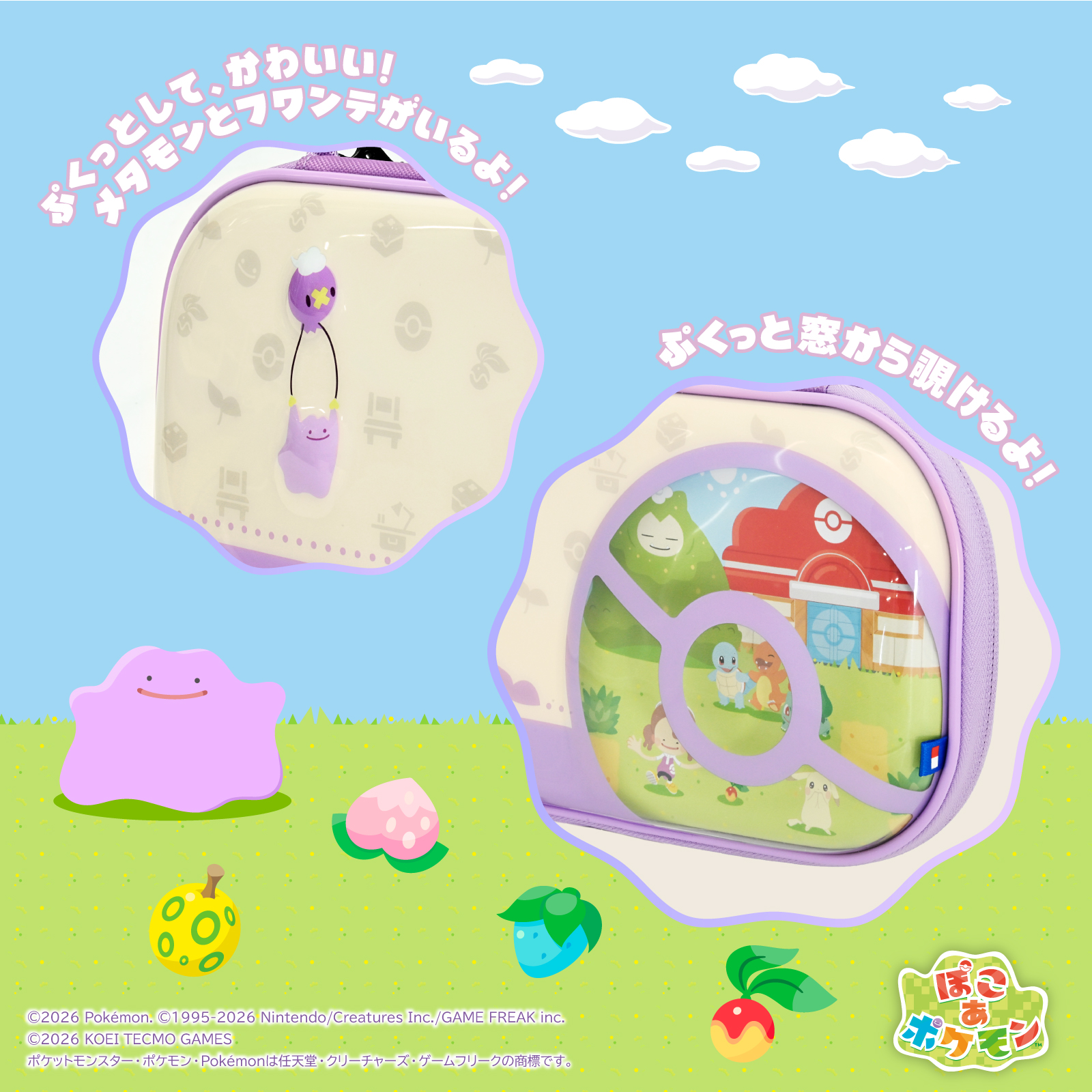 ぷっくりしているハイブリッドポーチが、『ぽこ あ ポケモン』デザインで登場! 『ぽこ あ ポケモン』の世界を覗き見できるデザインになっています!